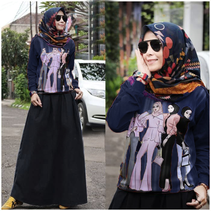 Bhn Babytery+Printing+atasan LD104 Pjg 60+Rok lingkaran pinggang 96 panjang 95 Tanpa Pashmina Size XL