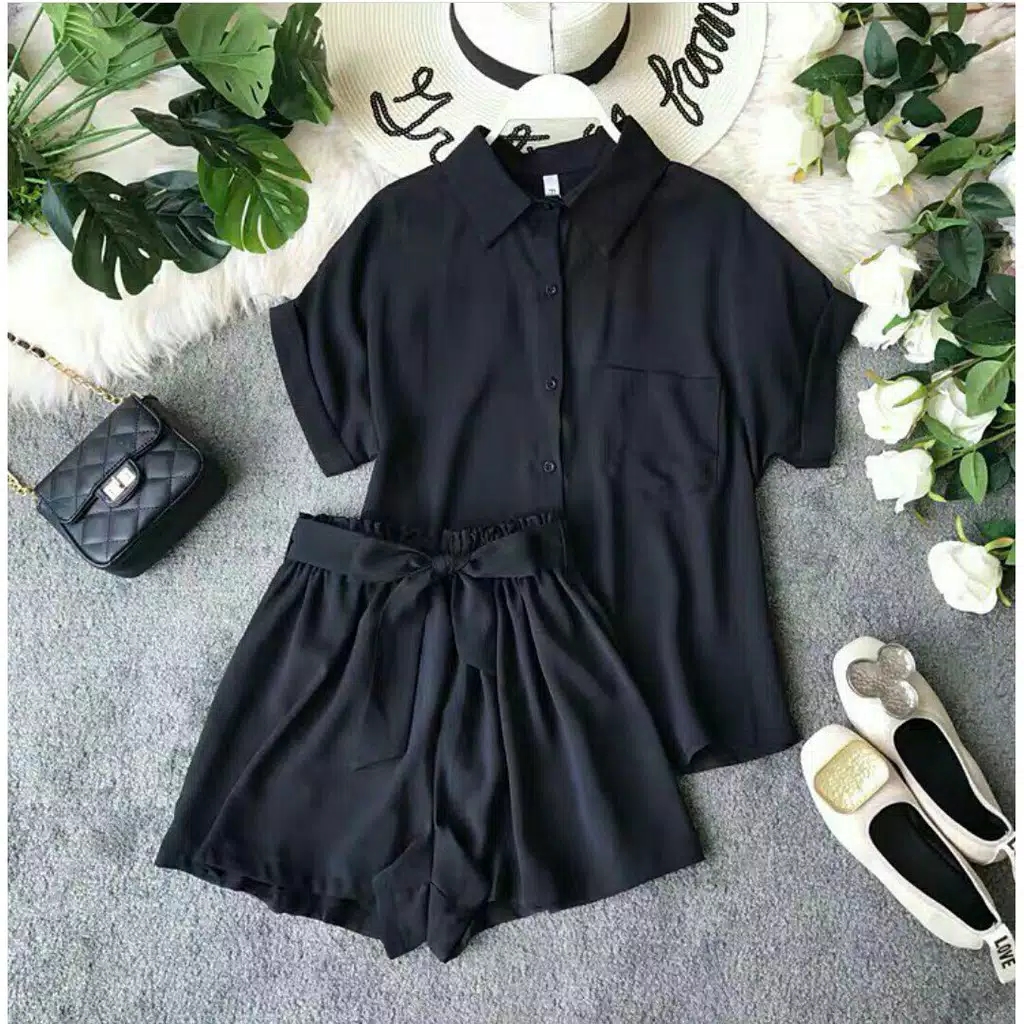 bhn moscrepe to fit L pj 57 kancing hidup,tali pinggang karet